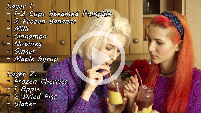 And here you have it, our totally improvised but surprisingly delicious Christmas themed breakfast smoothie (with a touch of Halloween and Thanksgiving). It honestly turned out tasting REALLY good so if you ever need to get rid of some pumpkin … try it!