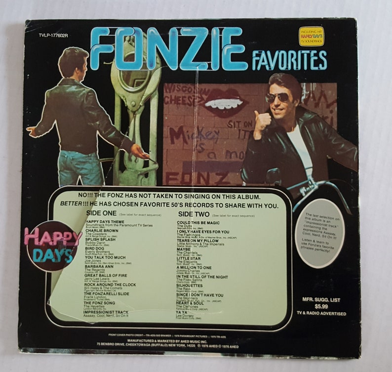 I really enjoyed the brief samples of songs I heard as a kid on TV commercials for greatest hits albums from the 50’s and 60’s, plus the use of old songs on Happy Days. But being limited to an allowance of 25 cents a week the only albums I ever bought back then were a collection of patriotic songs to honor the U.S. bicentennial, and a collection of late 50’s / early 60’s songs called “Fonzie Favorites”. I wore the groove down on both of them, though.