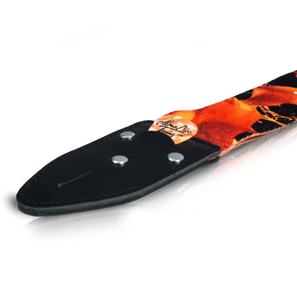 Full colour printed 100% polyester strap with leather ends and a handy “pick pocket”. Designed after the ORANGE album it is perfect for every guitarist and MonaLisa Twins fan. The adjustable size makes it comfortable for players small or big. Check the tabs below for more info.