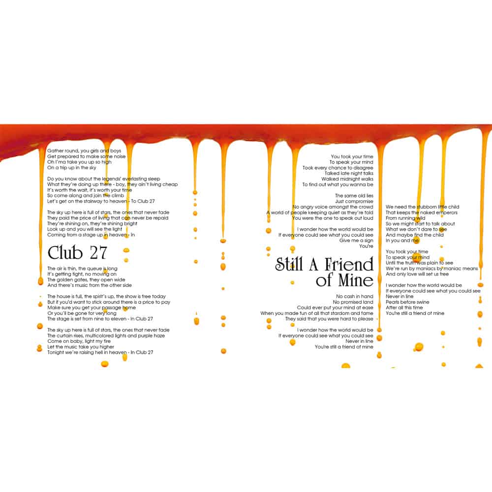 CLUB 27: WHOA !?…Only MLT could conjure up such a brilliantly creative aspect musically of the Club 27 thing…The music and lyrical references throughout this just intensifies this beyond … hope the 27 Gang approves !?…It rocks and rolls …