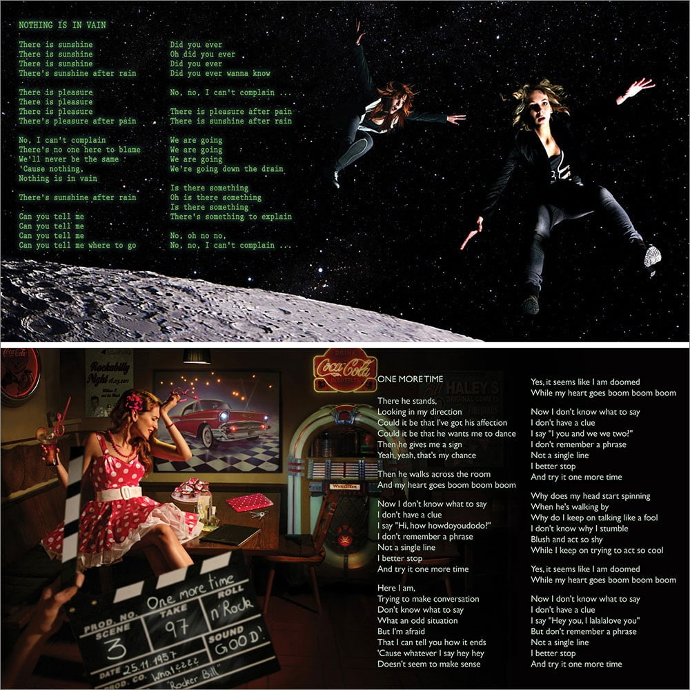 The MonaLisa Twins wanted to make every song on the album sound a little different, while trying to stick to their favourite musical elements like melodic harmonies, driving back beats and crunchy, bright guitar sounds. They used them in simple and catchy feel-good songs as well as in tracks that are strongly based on good old Rock ‘n’ Roll and Beat music. The album also features some Latin sounds and Ballads to make the album exciting to listen to.