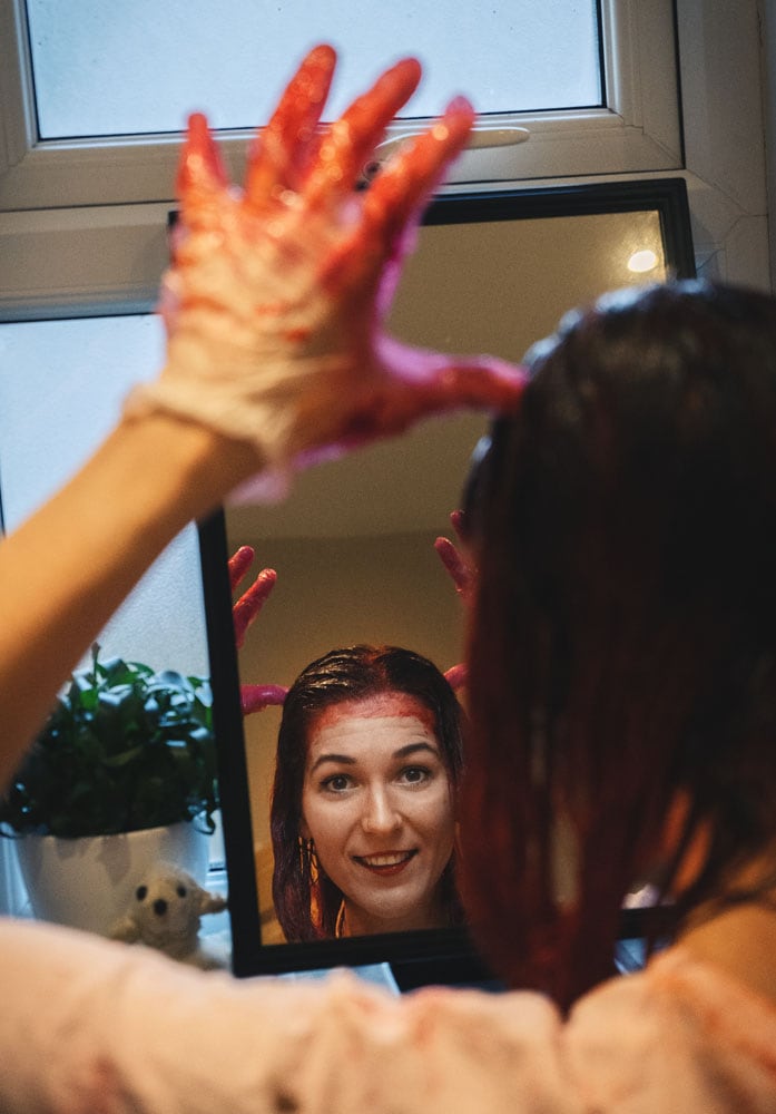 Time to touch up the roots again, so let’s turn the bathroom into the bi-monthly crime scene! When we first started dying our hair crazy…